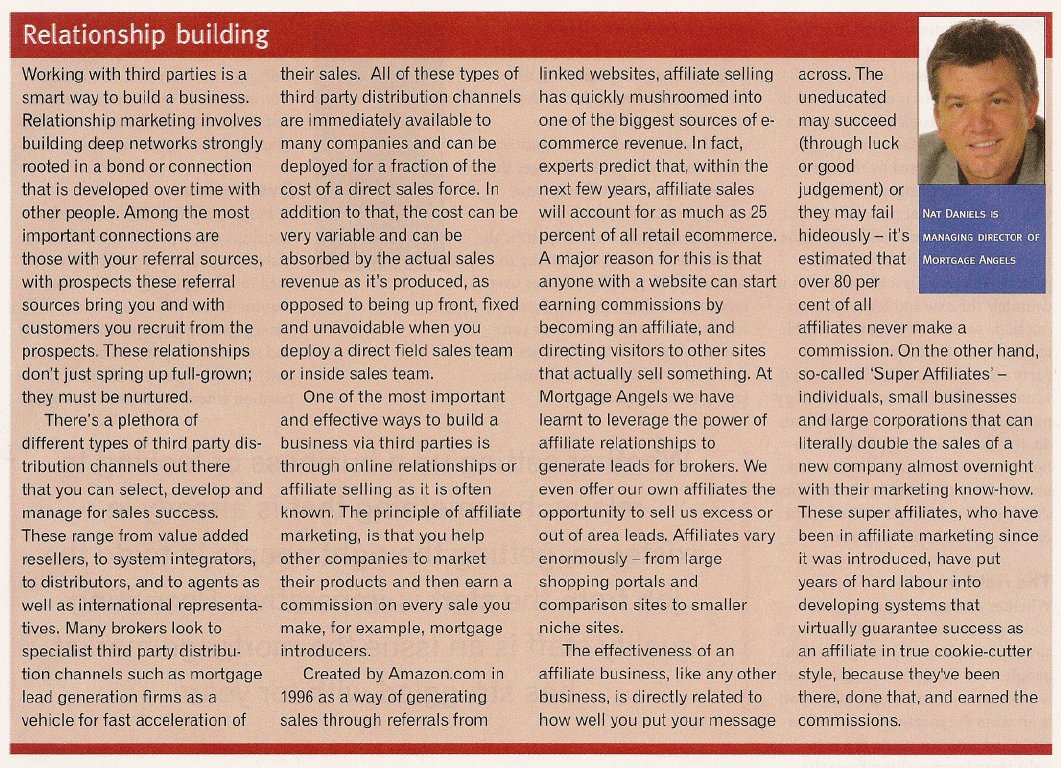 - "Relationship Building", Mortgage Introducer (Apr 06)